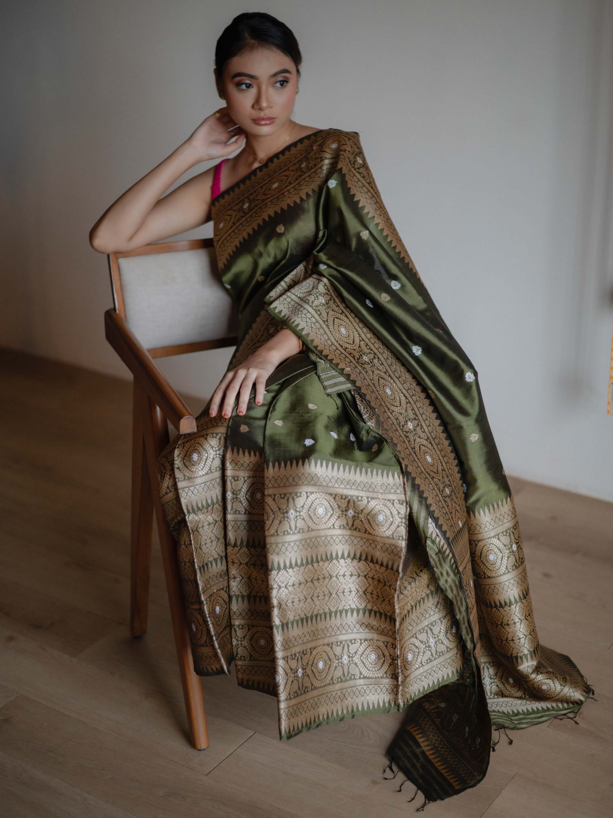 Mustard-Lac Eri Kesa Paat Silk Saree