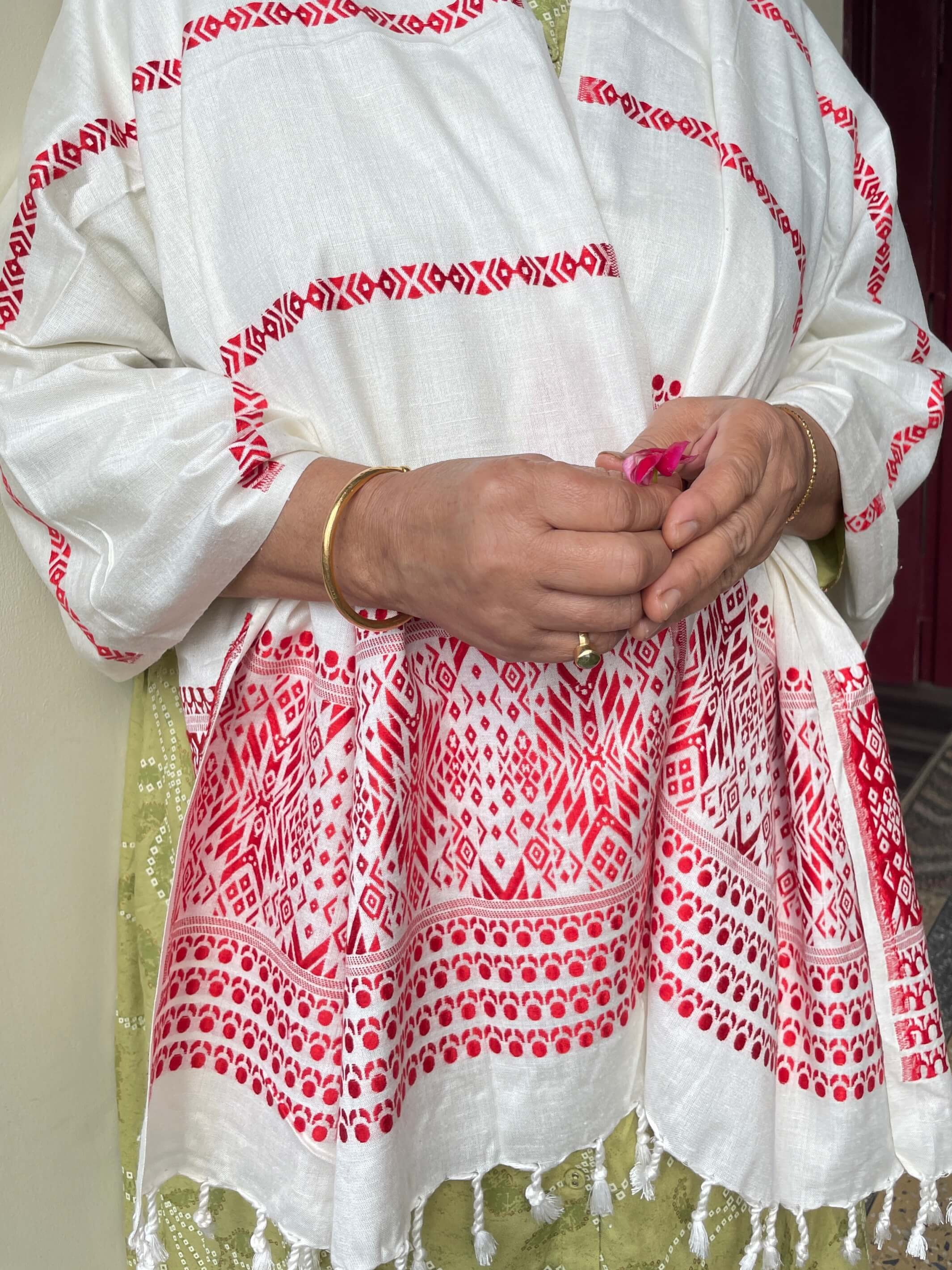 Sophisticated craftsmanship and vibrant colours inspired by the tribes of Northeast India characterise our collection of shawls, stoles, and scarves. Easy to wear and endlessly versatile, in a selection of natural fibre fabrics including soft Eri silk, fine wool and pure Muga spun silk— all incredibly soft on the skin. Perfect for wear as an extra layer in the cooler months.
