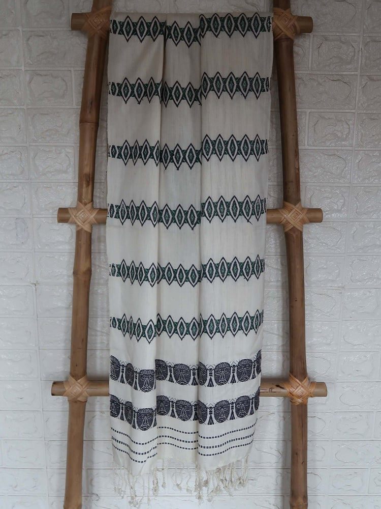 Featuring a bold and boisterous Naga-inspired headhunter design and edged with expressive tassels, this characterful shawl is big on personality and fun! Perfect for warding off autumnal winds and snuggling in to when the weather really begins to bite, this unique scarf will make a splendid gift to light up the darker days of winter.