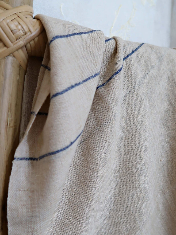 The unparalleled luxury of natural red Eri silk is second only to the understated style of this striped scarf, with narrow indigo-dyed stripes running across its width and adding subtle depth. Ideal for draping across the shoulders or snuggling in to for extra warmth and cosiness.