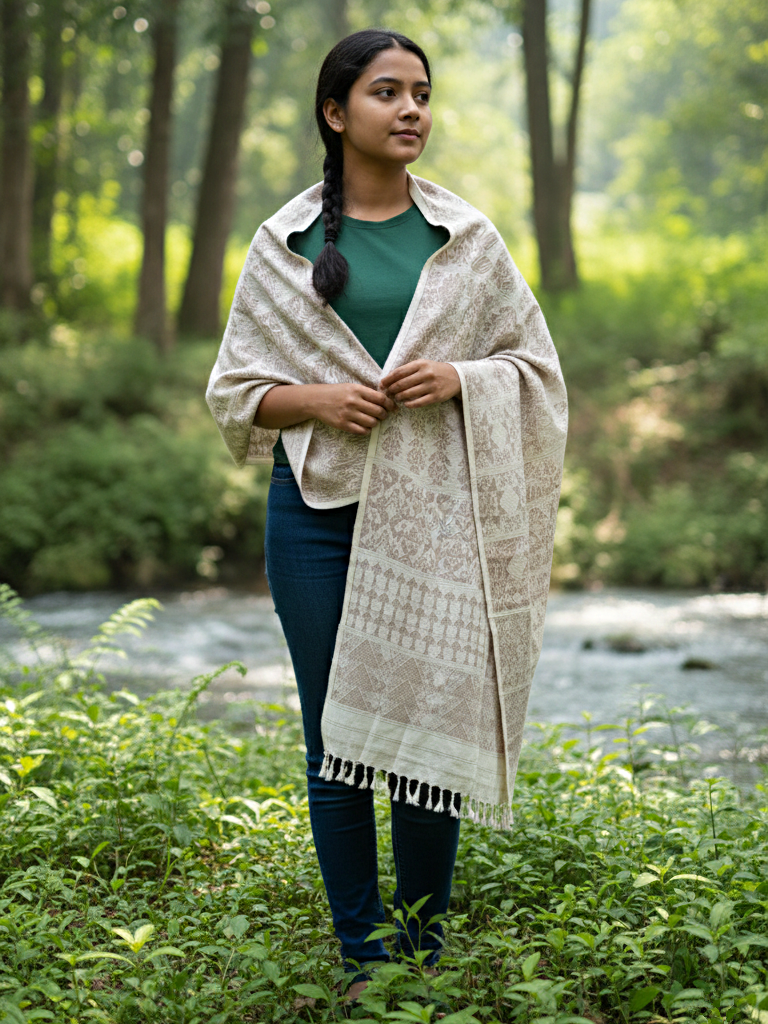 Nothing beats the skin-skimming smoothness and infinite luxury of a 100% pure Eri silk wrap, and this lightweight Eri silk shawl is the ultimate treat. Slide over summer shoulders for a furl of frothy softness, wear as a scarf as you kick through the leaves or shrug it around you at fire-lit suppers; there’s no end to its usefulness.