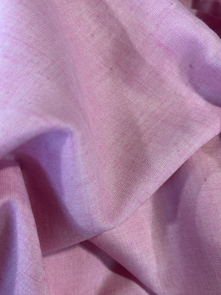 The pink tone is calm and understated—neither loud nor overly sweet—bringing a sense of warmth and femininity without excess. As with all natural, handloom fabrics, slight variations in texture or tone may appear, along with subtle organic specks—marks of authenticity that reflect its handcrafted origin.