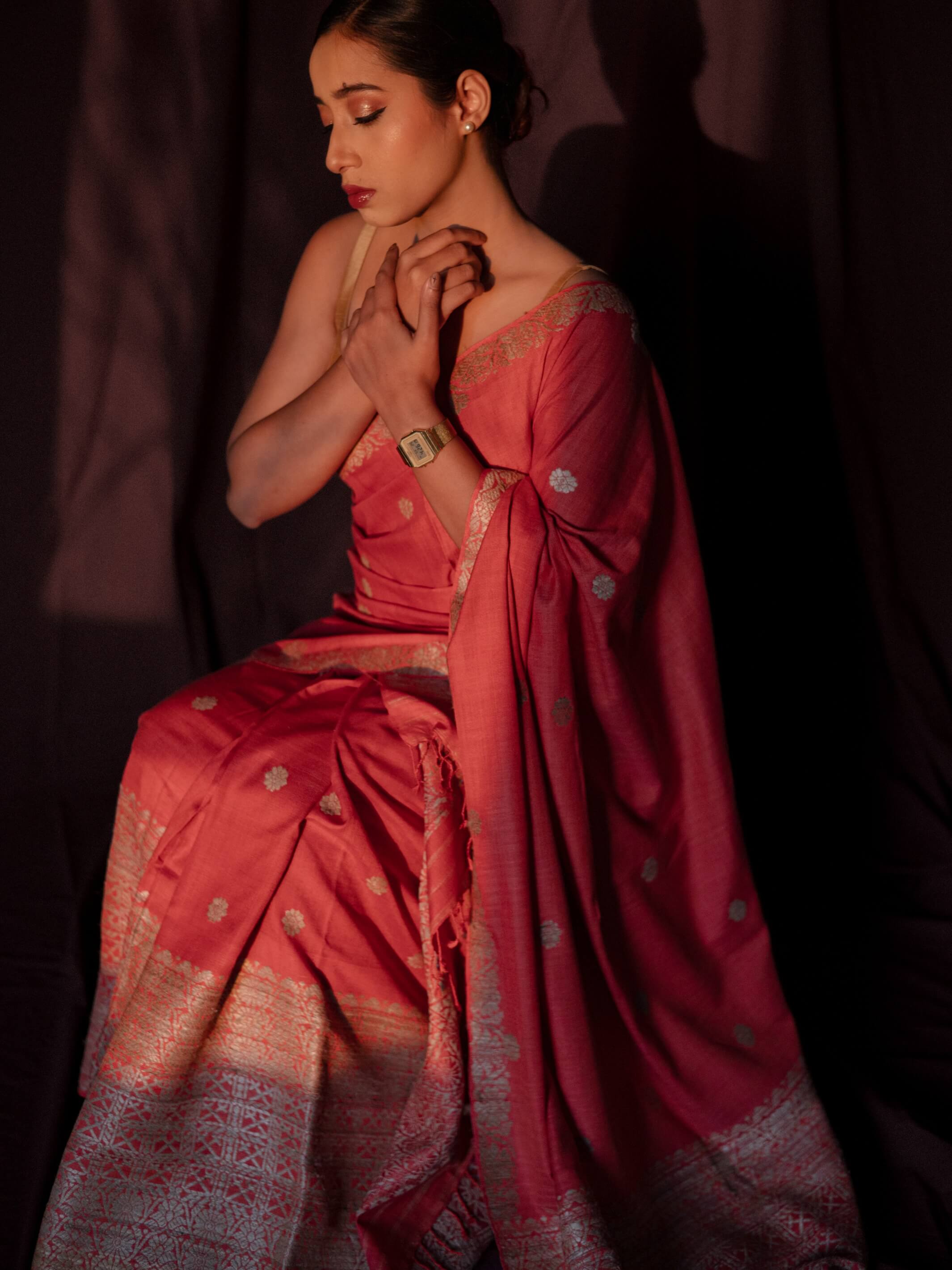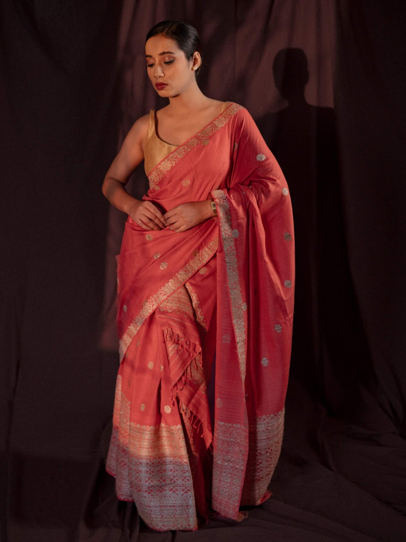 - Air your Assam silk drape from time to time and re-fold to avoid creasing at the same place for an extended period of time.